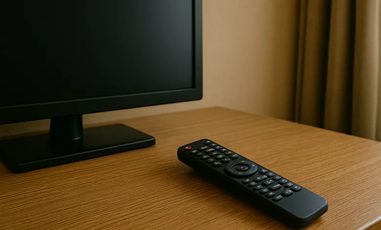 جهاز تحكّم واضح، بإضاءة خلفية خفيفة وأزرار مرتبة منطقيًا، هو جزء من راحة الضيف البصرية والعقلية.