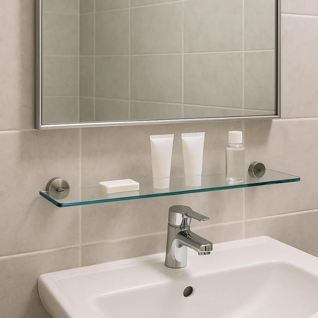 قد لا يلتفت الضيف فور دخوله الحمام إلى الرف الزجاجي تحت المرآة، لكنّ غيابه أو حضوره بطريقة غير مدروسة يُحدث أثرًا فوريًا.