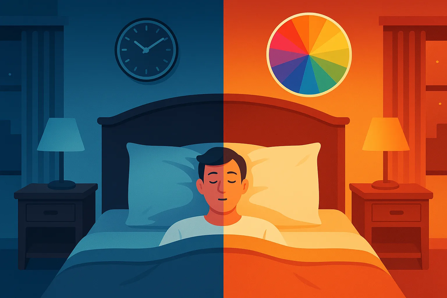 تلعب الألوان دوراً محورياً في تحفيز مناطق الدماغ المسؤولة عن إفراز هرمونات الاسترخاء أو اليقظة. الألوان الباردة مثل الأزرق الفاتح والأخضر النعناعي تعزز إفراز الميلاتونين، ما يساعد على النوم العميق، بينما الألوان الدافئة كالبرتقالي والأصفر الزاهي ترفع مستويات الكورتيزول وتقلل من الإحساس بالنعاس.