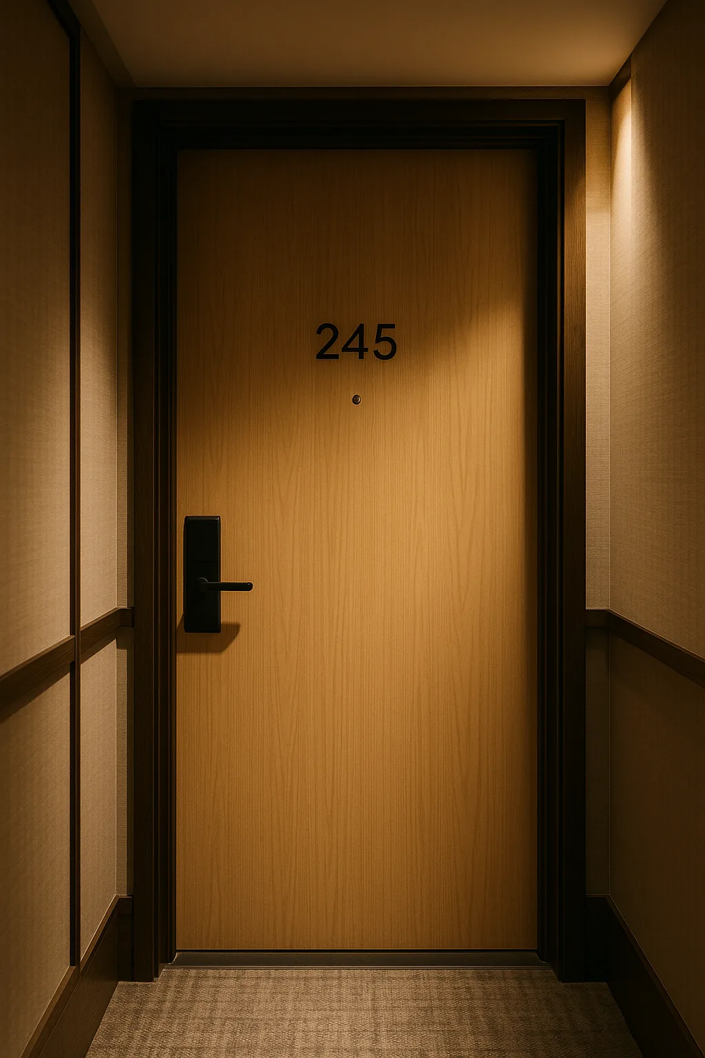 واجهة الباب ليست مجرد حاجز بين الداخل والخارج، بل تمثل أول نقطة تواصل حسّي بين النزيل والغرفة. تصميم الباب، خامته، لونه، وجود رقم الغرفة بشكل بارز أو أنيق، كلها عناصر تترجم اللاوعي البصري للضيف إلى توقعات محددة. فباب مصقول بلمعة خفيفة يعطي شعورًا بالفخامة، بينما باب خشبي دافئ يوحي بالراحة والانتماء، وباب معدني داكن قد يثير شعورًا بالبرود أو الرسمية.