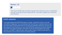 - في الفنادق ذات السمعة الجيدة، حتى تقييم واحد يمكن أن يؤدي لتراجع ملحوظ في الحجوزات.