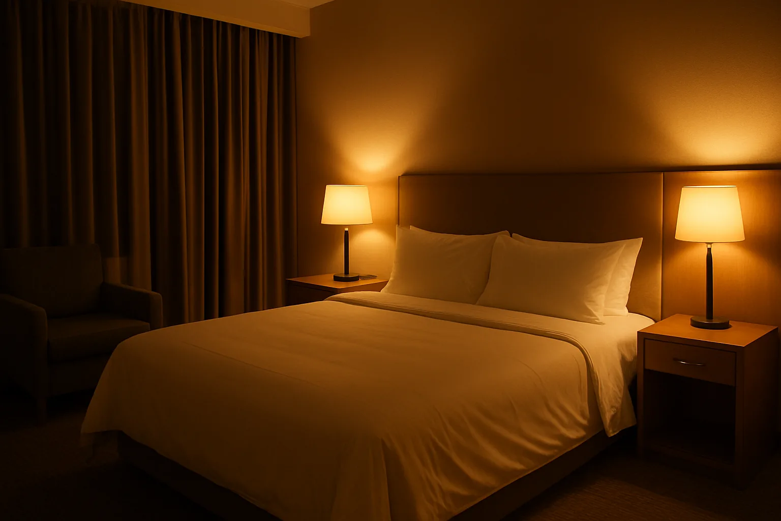 إضاءة الغرف ليلاً تُشكّل عنصرًا حساسًا في تجربة الإقامة، حيث تؤثر مباشرة على راحة النزيل ونومه وانطباعه عن جودة الفندق واهتمامه بالتفاصيل